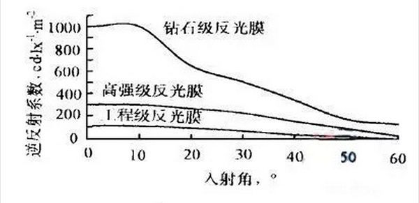 (各種類型的反光膜的初始反光強度)